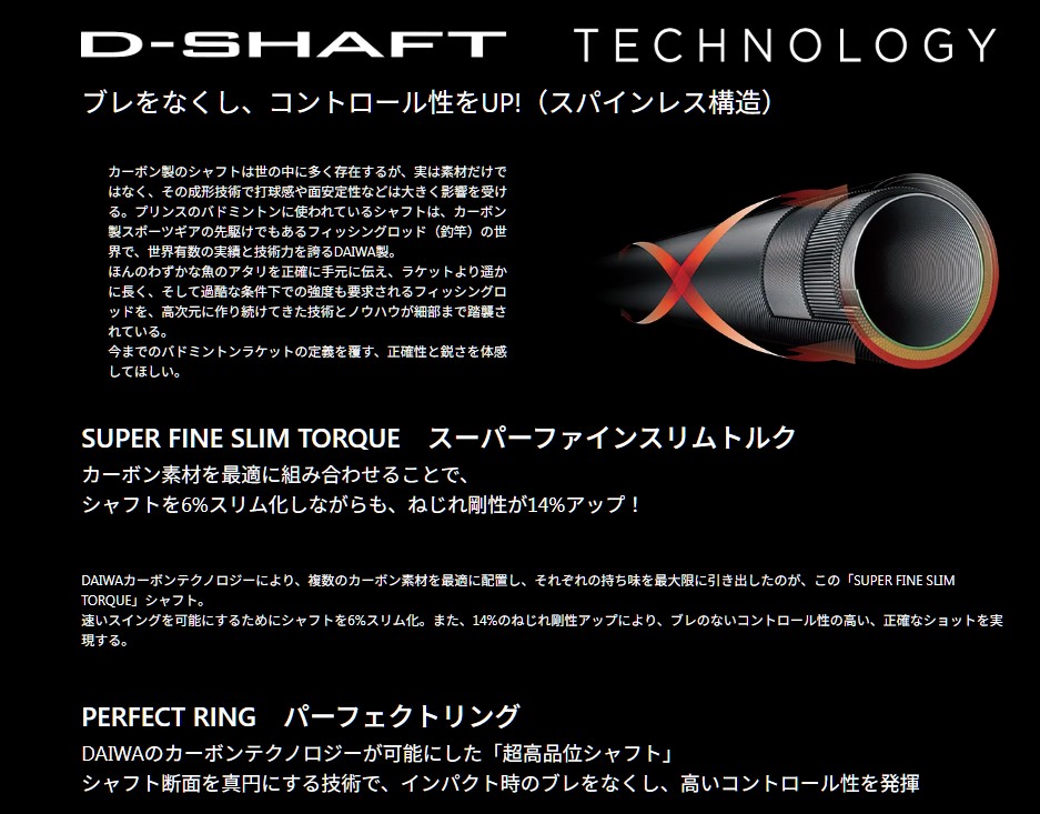 ・ダイワ 製シャフト採用 D-SHAFT テクノロジー